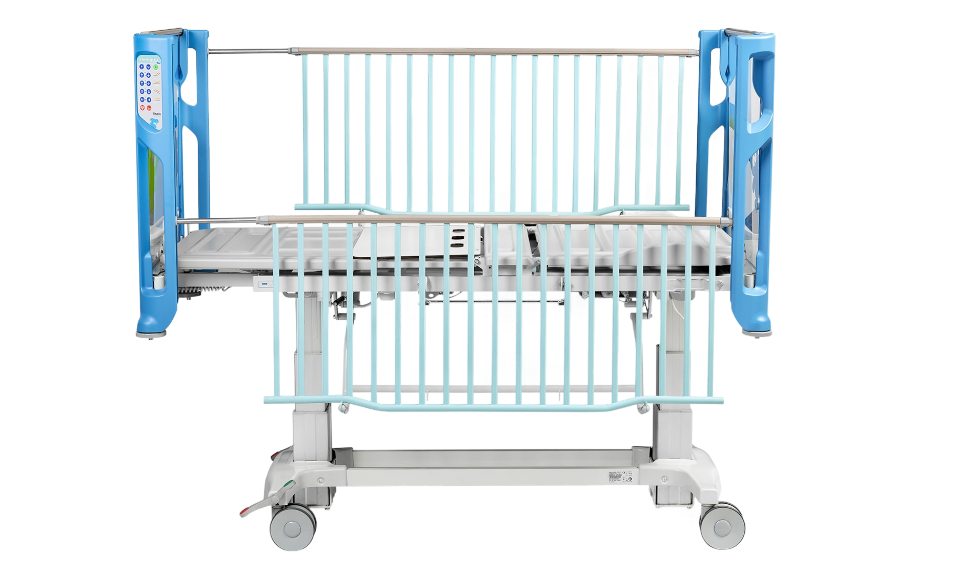 As grades laterais telescópicas da cama Embrace Advance Next oferecem máxima proteção e visibilidade, essenciais para a segurança dos pacientes pediátricos. Esta característica permite aos cuidadores monitorizar os pacientes de forma contínua e eficaz.