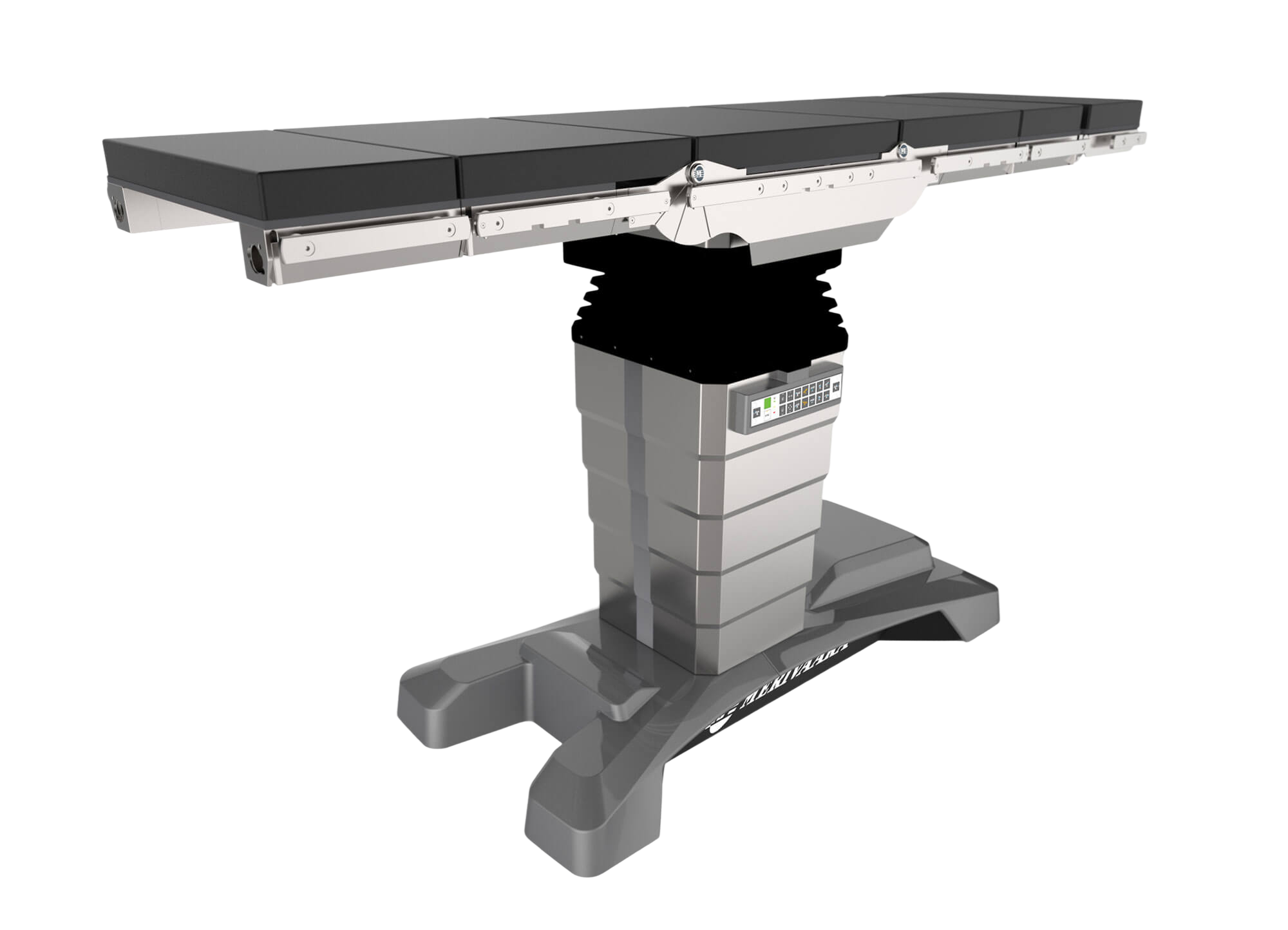 A base estreita e a secção dorsal em fibra de carbono garantem acesso sem obstruções à imagem intraoperatória com braço em C, essencial em ortopedia, neurocirurgia e cirurgia cardiovascular.