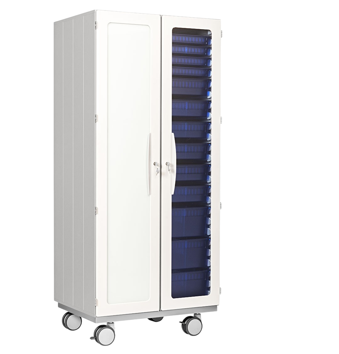 Todos os materiais principais são incombustíveis. As versões XVC e XVB têm portas classificadas na Classe 1 de reação ao fogo, garantindo segurança superior mesmo em ambientes críticos, como unidades de cuidados intensivos ou blocos operatórios.