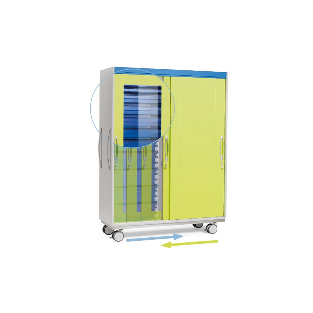 Cada módulo padrão pode ser equipado com divisórias internas ajustáveis, tabuleiros ISO ou prateleiras móveis. O design modular permite combinações personalizadas adaptadas às necessidades operacionais de cada espaço.
