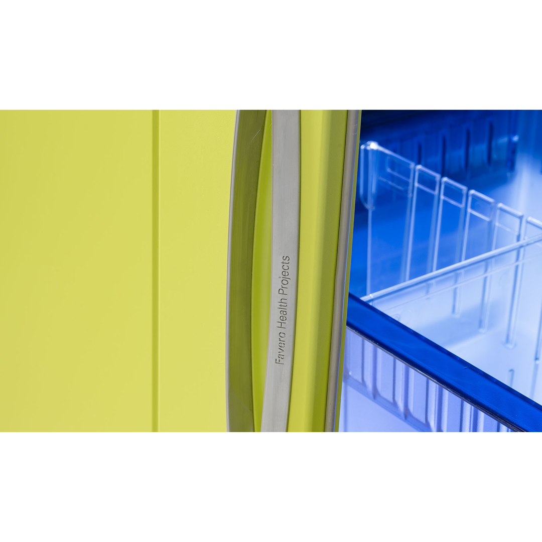 Este sistema foi desenvolvido com base numa colaboração estreita entre a equipa técnica da Favero Health Projects e profissionais de saúde, para responder às exigências crescentes de eficiência, higiene e aproveitamento de espaço. As portas de correr permitem acesso total aos compartimentos, sem necessidade de área de abertura, tornando-o ideal para zonas de circulação intensiva ou áreas compactas.