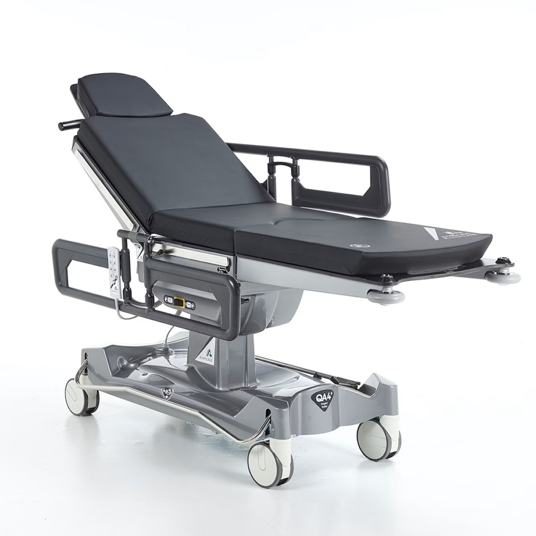 Com um design ergonómico e intuitivo, a QA4 funciona simultaneamente como maca de transporte e mesa cirúrgica, oferecendo mobilidade superior sem comprometer a estabilidade. Está equipada com funções eléctricas para elevação, inclinação lateral, Trendelenburg e ajuste do encosto, bem como acessórios específicos para várias especialidades clínicas. Compatível com imagiologia intra-operatória e com capacidade até 250 kg, adapta-se a um vasto leque de procedimentos — da cirurgia geral à ortopedia, oftalmologia ou ginecologia.