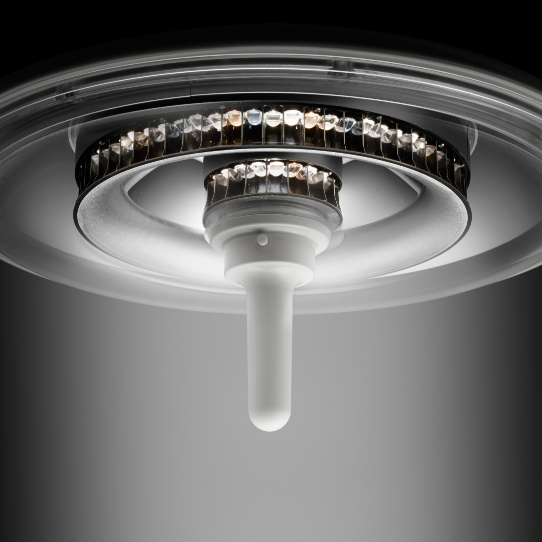 Com apenas 52 cm de diâmetro, o UNICA 520 oferece potência luminosa comparável a modelos maiores, mantendo mobilidade superior e facilidade de integração em salas com espaço reduzido ou com múltiplos equipamentos suspensos.