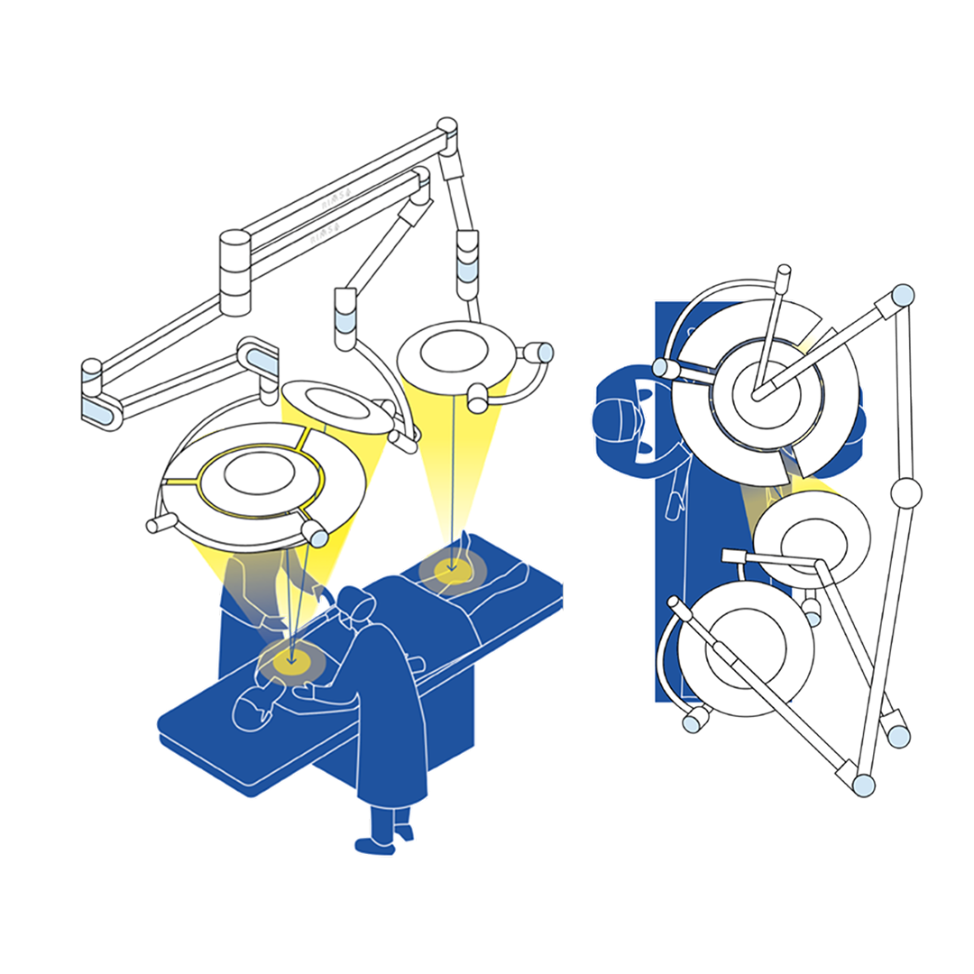 Patenteada pela RIMSA em 2017, a tecnologia 2R maximiza a superfície de emissão da luz através da colimação dupla, oferecendo iluminação cirúrgica sem encandeamento, sem sombras e com reprodução cromática precisa, mesmo em ambientes operatórios de longa duração.